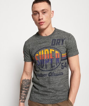 Miesten klassinen Superdry Custom -t-paita. Piristä kauden t-paitavalikoimaasi klassinen Custom -t-paidalla. Tämän pyöreäkauluksisen lyhythihaisen t-paidan rinnassa on suuri logokuvio. Loppusilauksena toisessa hihassa on logomerkit. Yhdistä t-paita kapealahkeisiin farkkuihin ja suosikkitennareihisi.